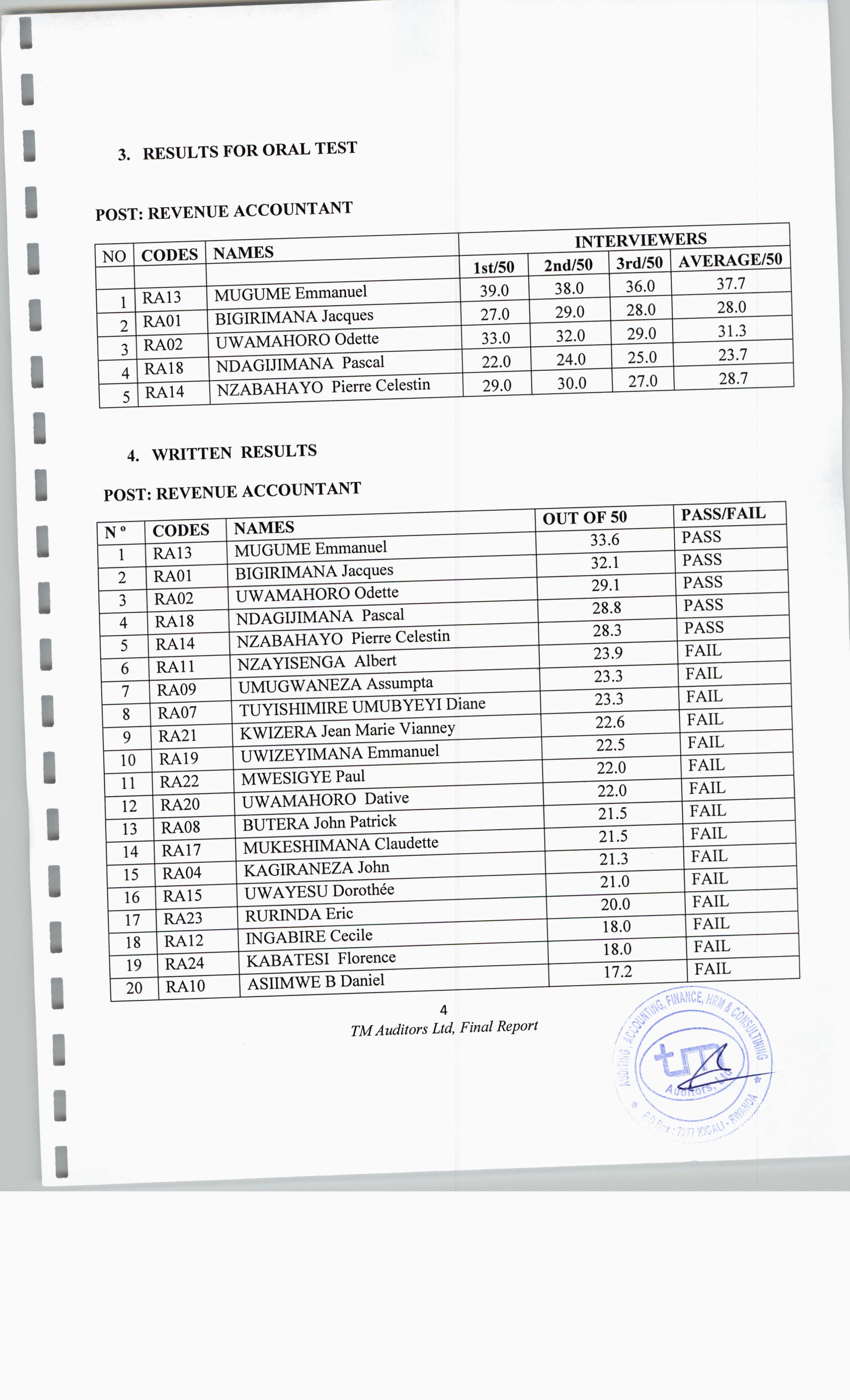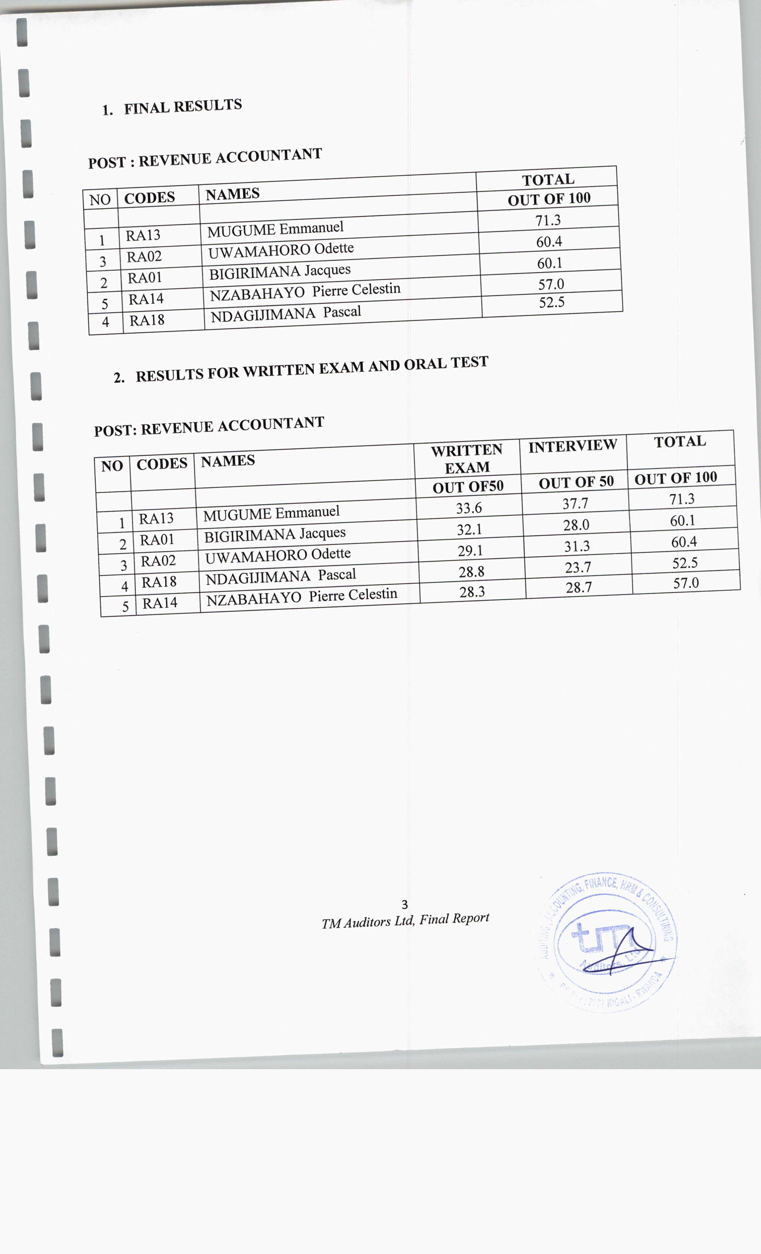 • 03/08/2016:  Revenue Accountant recruitment process final results